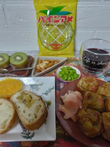 今夜優勝を決められるか阪神タイガース 家でドキドキ応援タイム!(^^)! 赤ワインを片手に 岡田監督の好きなパインあめも参加です さつまいもフランスパンにカボチャの甘酒とたこ焼きで⤴️ さつまいもフランスにカボチャの甘酒をジャム代わりに付けて食べます …