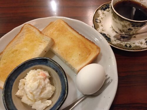 昔、喫茶店の上のマンションに住んでおられたのでよく来られてたそうです お店の前は通ったことはありましたが、初めてモーニングに入りました トーストとゆで卵にポテトサラダでした レトロな雰囲気の喫茶店です☕ 今日も暑かったのですが、緩めのクーラーに…